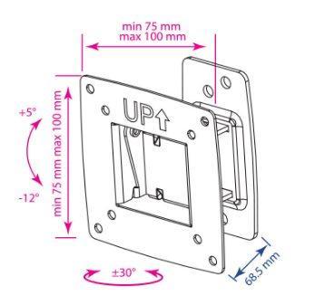 Кронштейн Kromax Optima-102 черный 10"-28" настенный от стены 68.5мм наклон +5°/-12° VESA 100х100мм