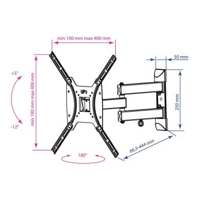 Данный кронштейн совместим с дисплеями в диапазоне от 15 до 55 дюймов и позволяет наклонять экран в диапазоне +5°/-12°, а также поворачивать на 180°. Максимально допустимый вес - 30 кг.