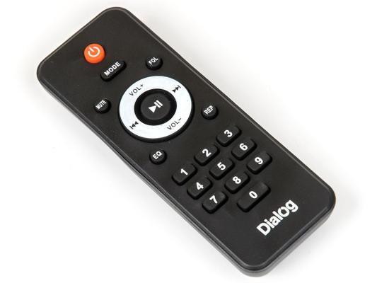 Управлять работой Dialog Progressive AP-250 можно не вставая с места, достаточно лишь щёлкнуть пару раз кнопками на удобном пульте дистанционного управления. С его помощью вы можете изменить громкость, отрегулировать звучание низких частот сабвуфера, переключить источника сигнала, поставить на паузу или наоборот, начать /воспроизведение, а также прокрутить назад/вперед треки или выбрать радиостанцию. В режиме караоке вы можете регулировать громкость микрофона и эхо.
