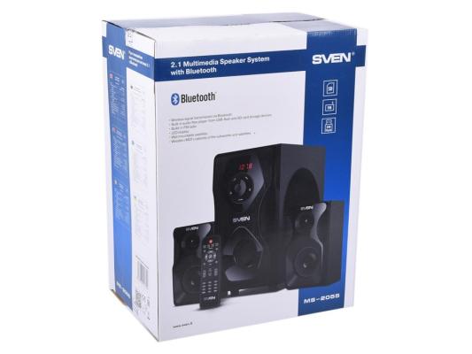 Колонки Sven MS-2055,2.1 чёрный ((RMS):30Вт + 2x12.5 Вт, FM-тюнер, USB/SD, дисплей, пульт ДУ, Bluetooth)