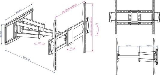 Модель совместима с девайсами весом до 101 килограмма и обладающими диагональю от 40 до 90 дюймов. Установленное в пазы устройство можно будет наклонять в пределах +5°/-15° и поворачивать на 160°.