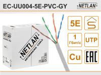 Кабель U/UTP indoor 4 пары категория 5e NETLAN одножильный 100% медь PVC 305м серый EC-UU004-5E-PVC-GY