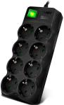 SVEN Фильтр SF-08E-16 3,0 м (8 розеток с защитными шторками,16А) черный, цветная коробка [SV-021610]