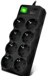 SVEN Фильтр SF-08E-16 3,0 м (8 розеток с защитными шторками,16А) черный, цветная коробка [SV-021610]